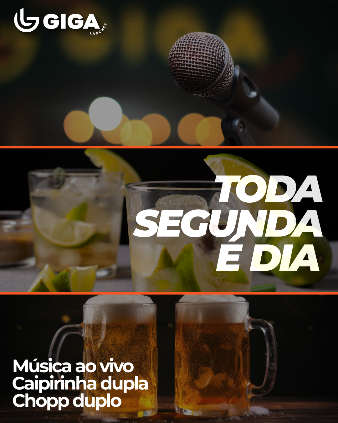 Agora é oficial: toda segunda-feira tem música ao vivo, chopp duplo e caipira dupla no Giga Lanches.