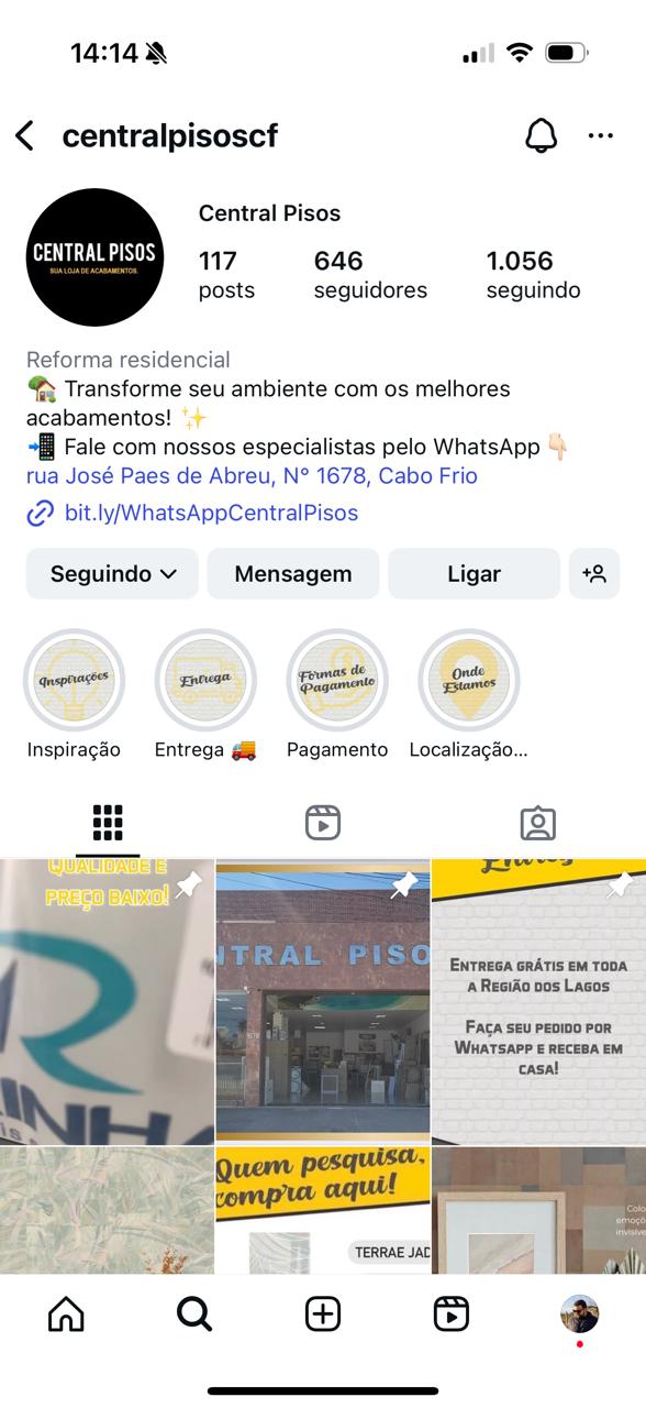 Rafa, vou precisar da tua ajuda. Criar um CASE de identidade visual. Basicamente um ANTES x DEPOIS, mas uma mini apresentação que o Juninho vai usar nas call. Eu vou subir a print do perfil da Central Pisos de quando pegamos e aí tu pode usar o perfil de agora. Pode usar também o material que a Gabi fez, que vou upar junto.