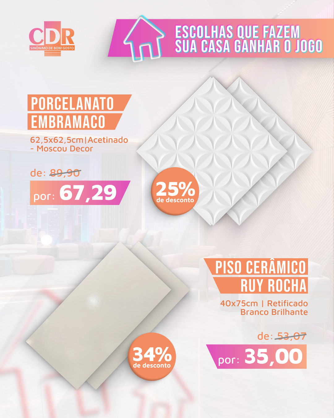 Porcelanato Moscou Decor 62,5X62,5 62042 A - Embramaco - De 89,90 Por 67,29 (25%)