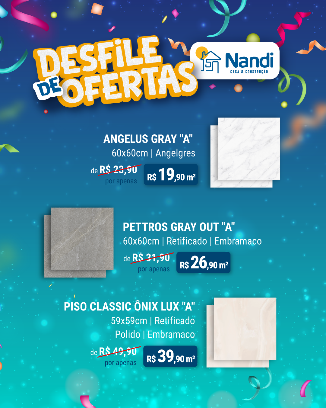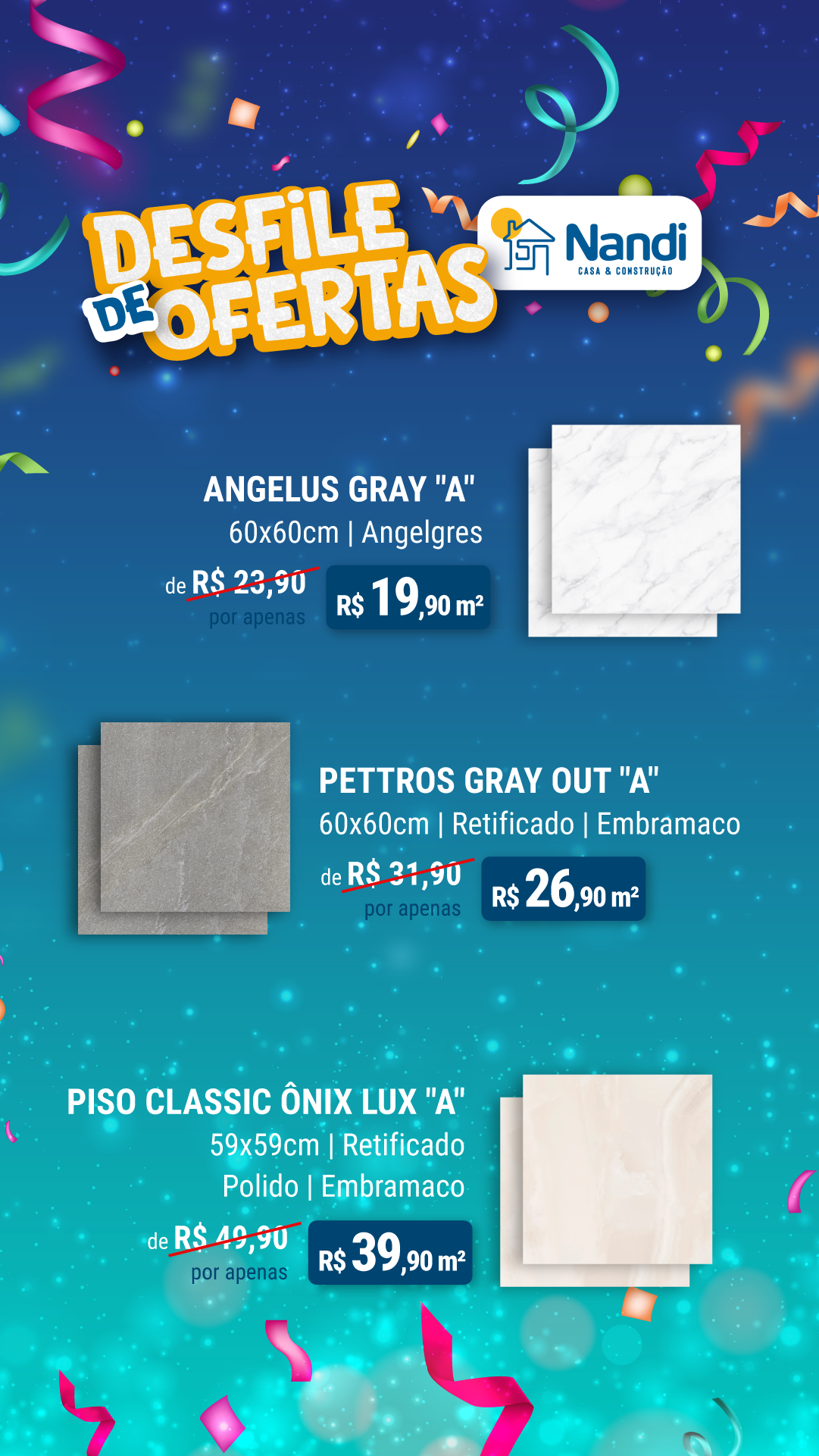 Gabi, o flyer com os 3 pisosque fizesse por último, vamos refazer nessa identidade. Faz para feed e storie.