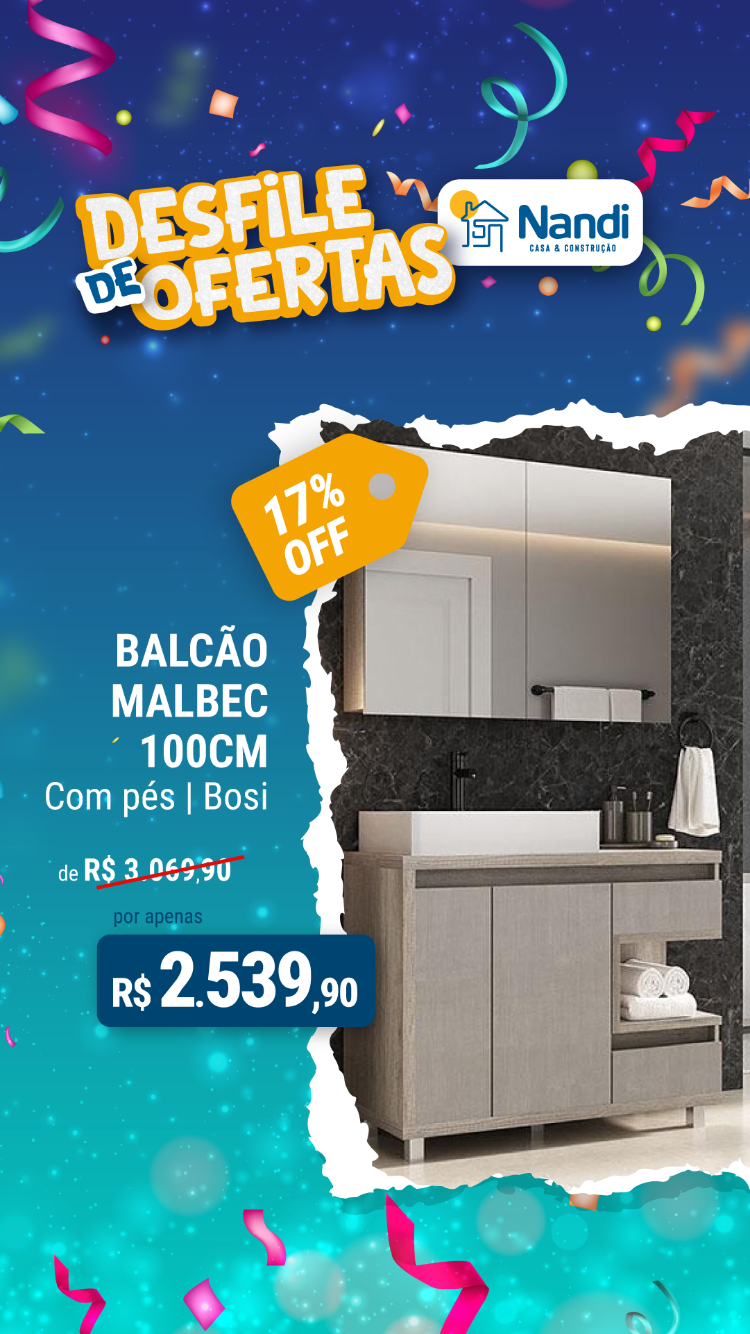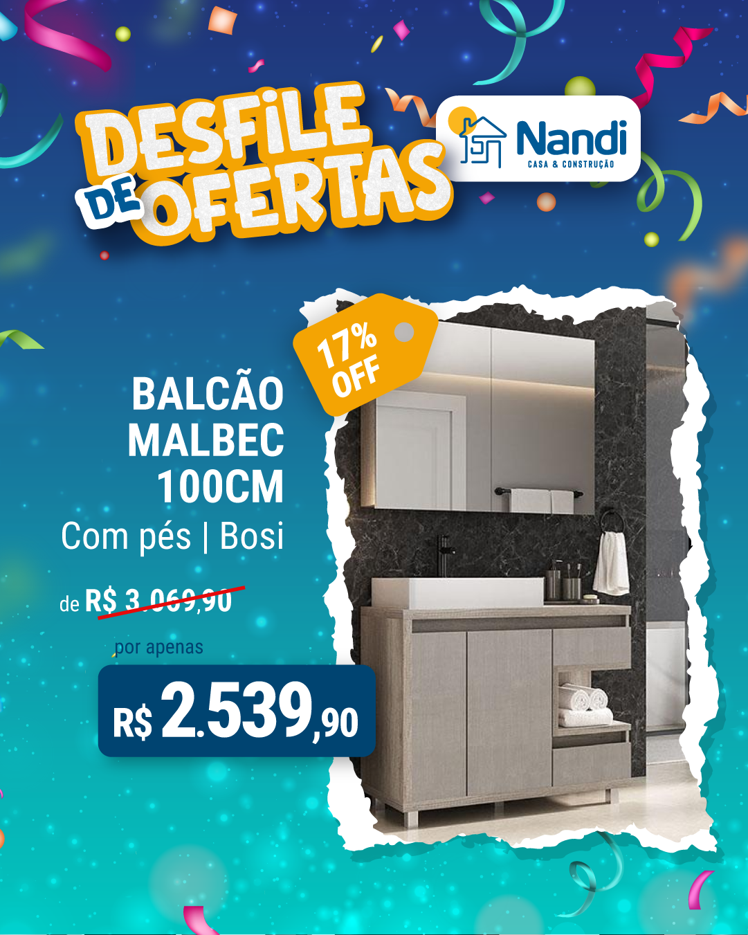 balcão malbec 100 cm c/ pés Bosi - de 3069,90 por 2539,90
