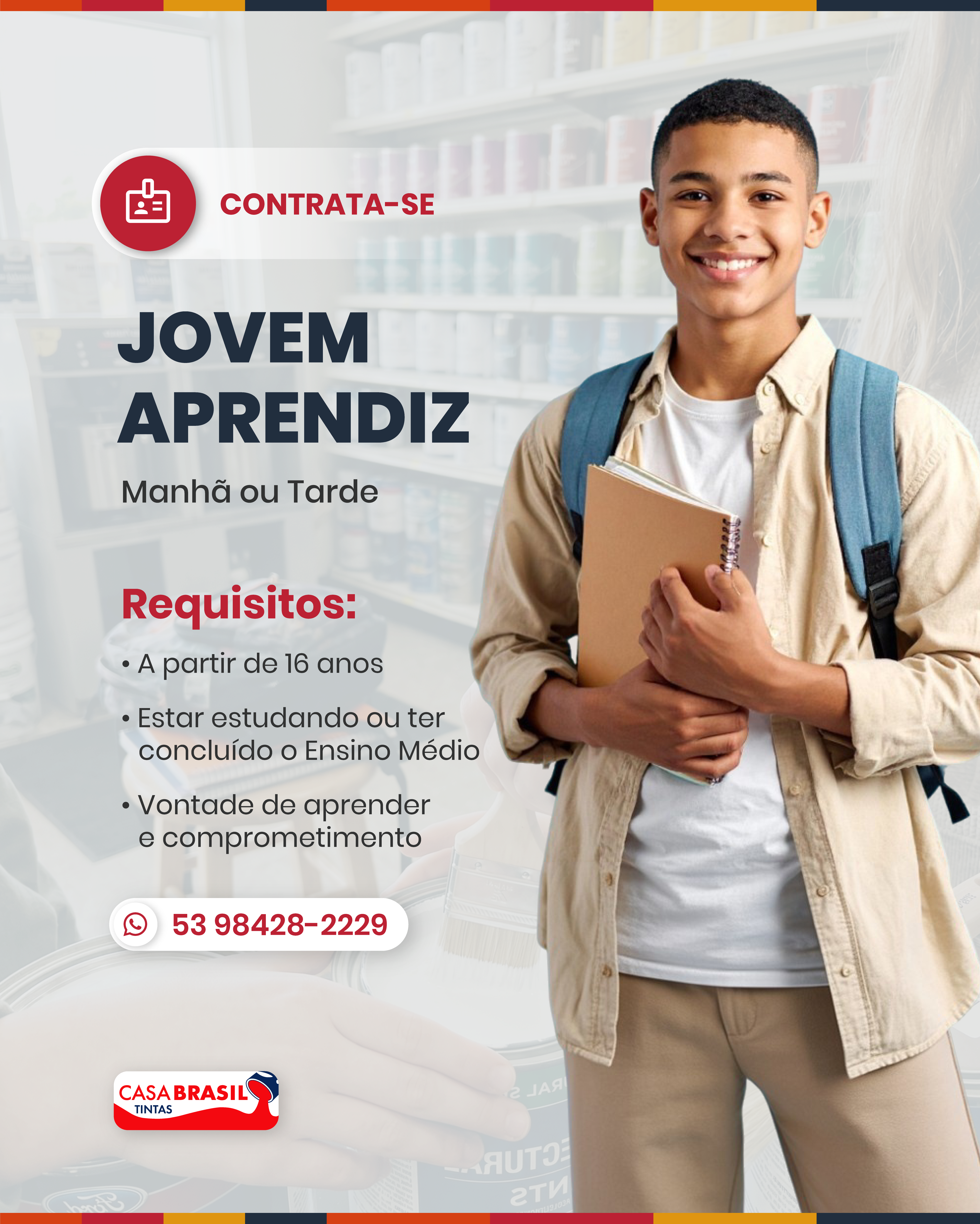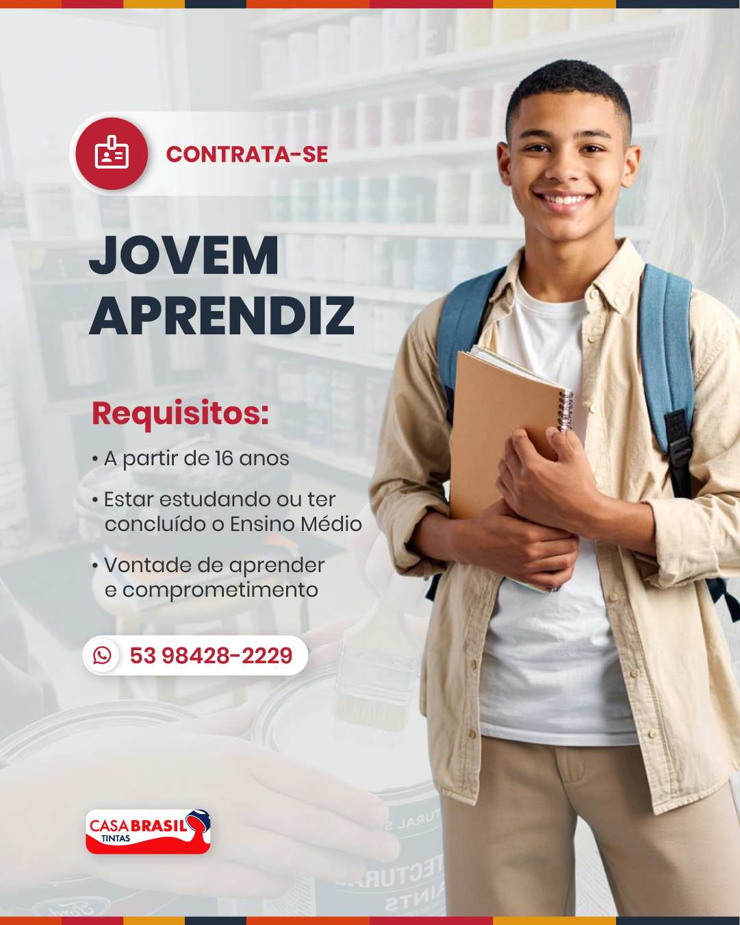 A Casa Brasil Tintas está abrindo espaço para quem quer dar o primeiro passo no mercado de trabalho 🎯