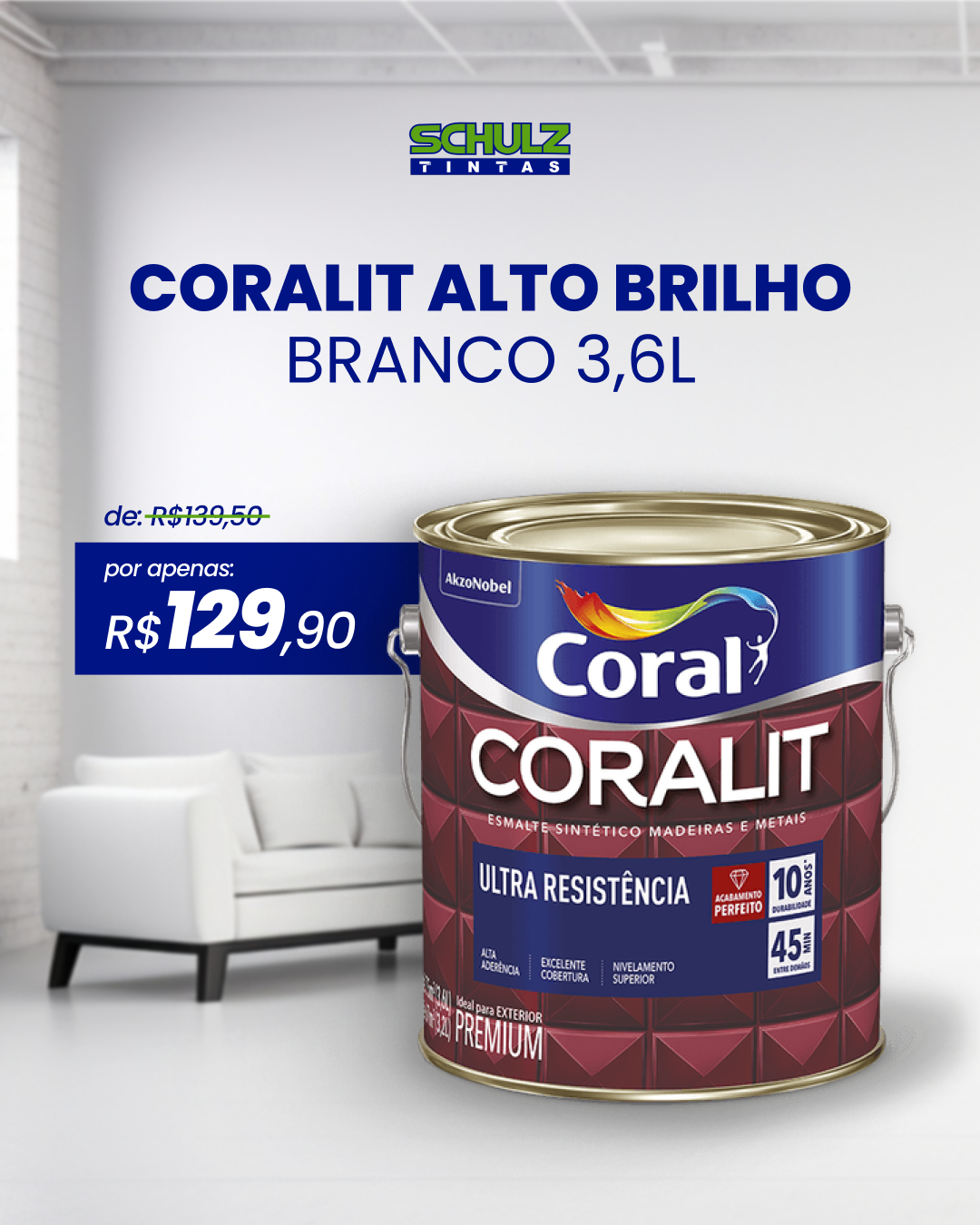 Coralit alto brilho branco 3,6L - de R$139,50 por R$129,90
