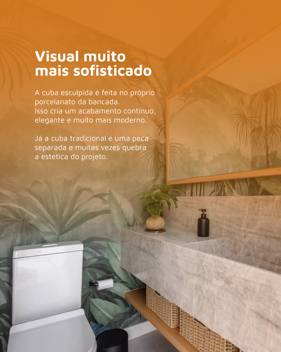 Na Design Acabamentos, produzimos cubas esculpidas sob medida, pensadas de acordo com o porcelanato e com o projeto de cada cliente.