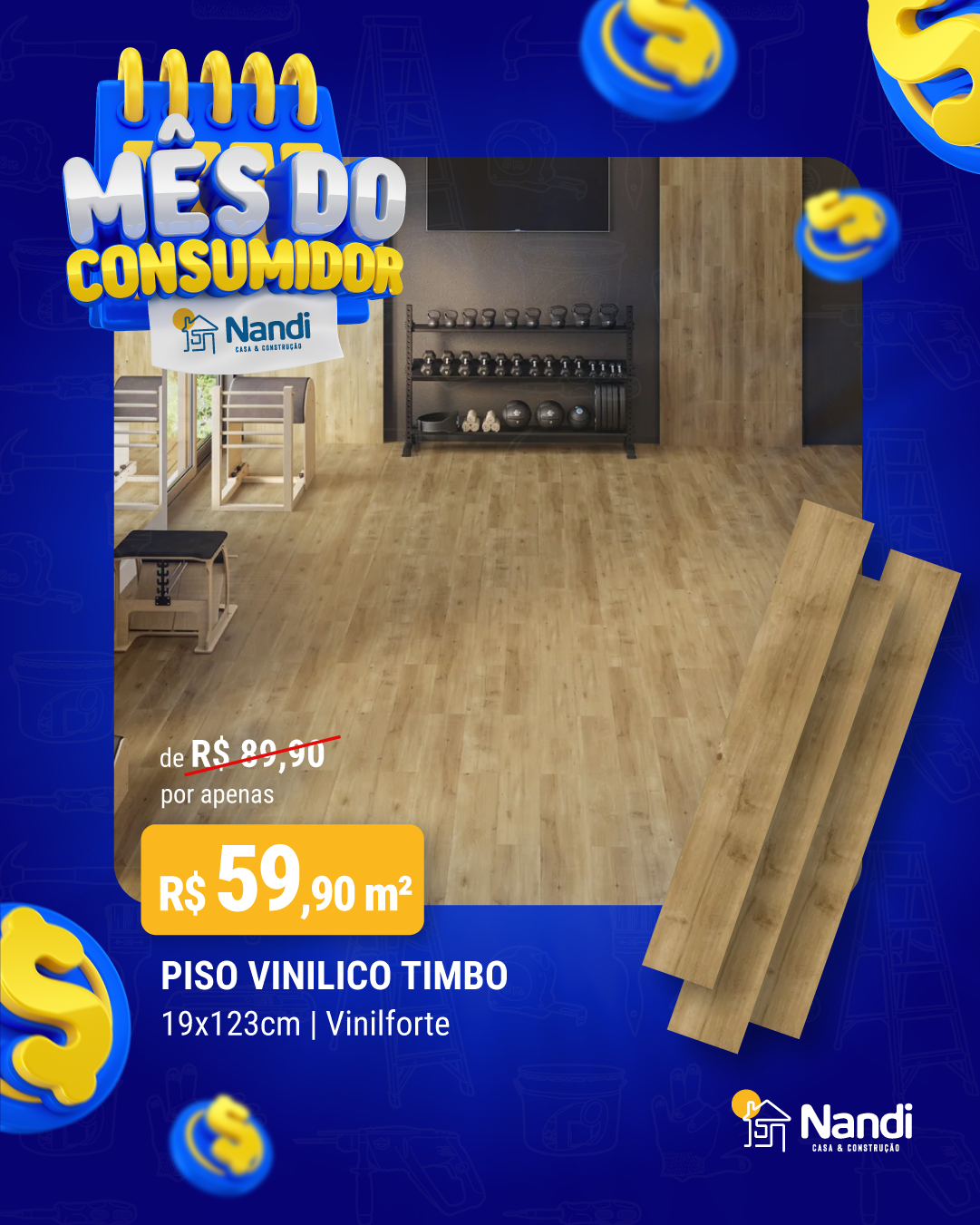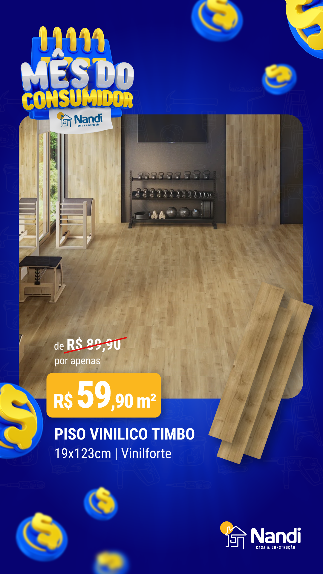 Gabi, vamos fazer um CARD pra NANDI igual aqueles que a gente fez de LAMINADO par ABC, lembra? Salvo engano, tu mesmo que fez... Mas enfim é um CARD que mostra o produto aplicado em destaque, mas traz nome e preço do produto também. Lembrando, esse é VINÍLICO.