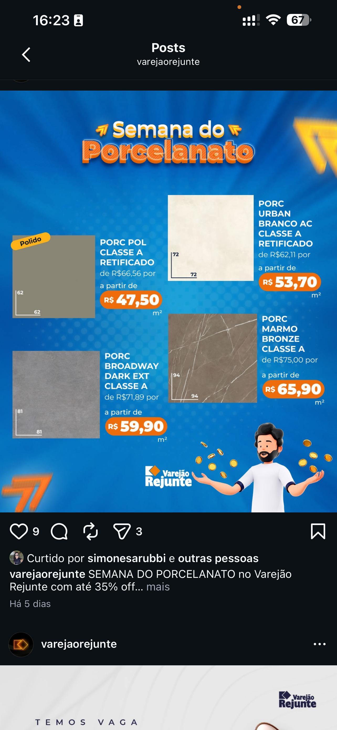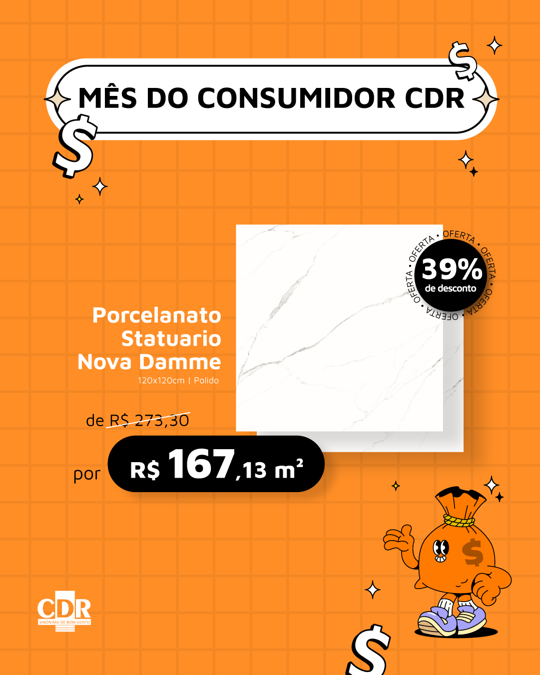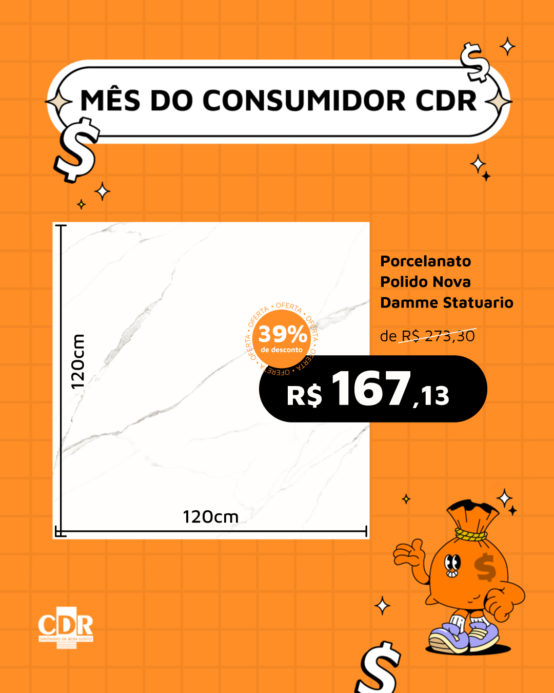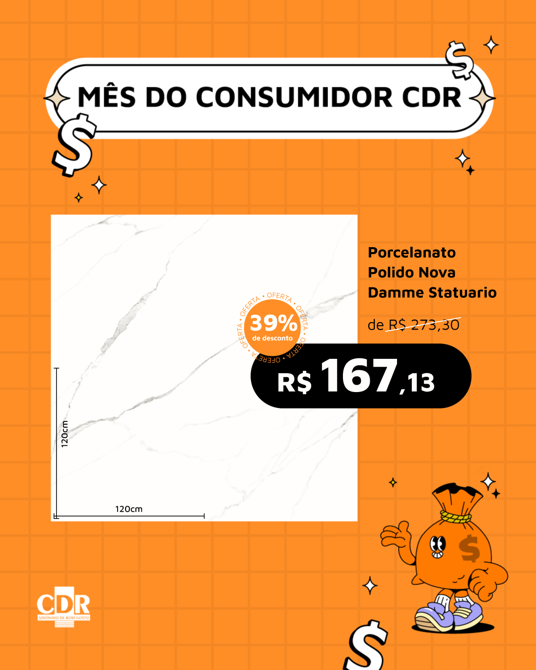 Gabi, vamos fazer um segundo modelo desse piso. Preciso que coloque bem destacado o tamanho do piso 120x120 e coloca o desconto logo abaixo de preço também destacado.