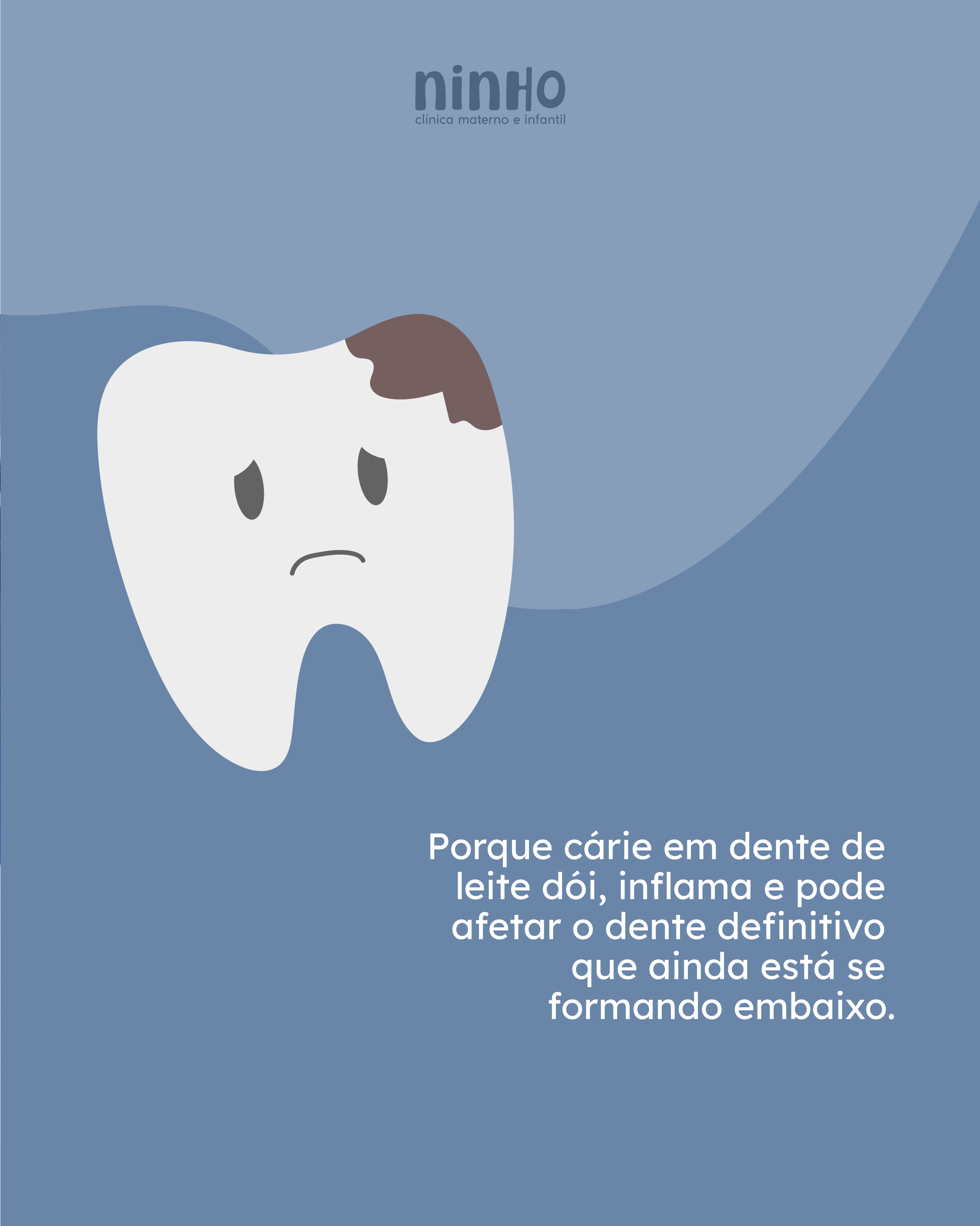 "Porque cárie em dente de leite dói, inflama e pode afetar o dente definitivo que ainda está se formando embaixo."