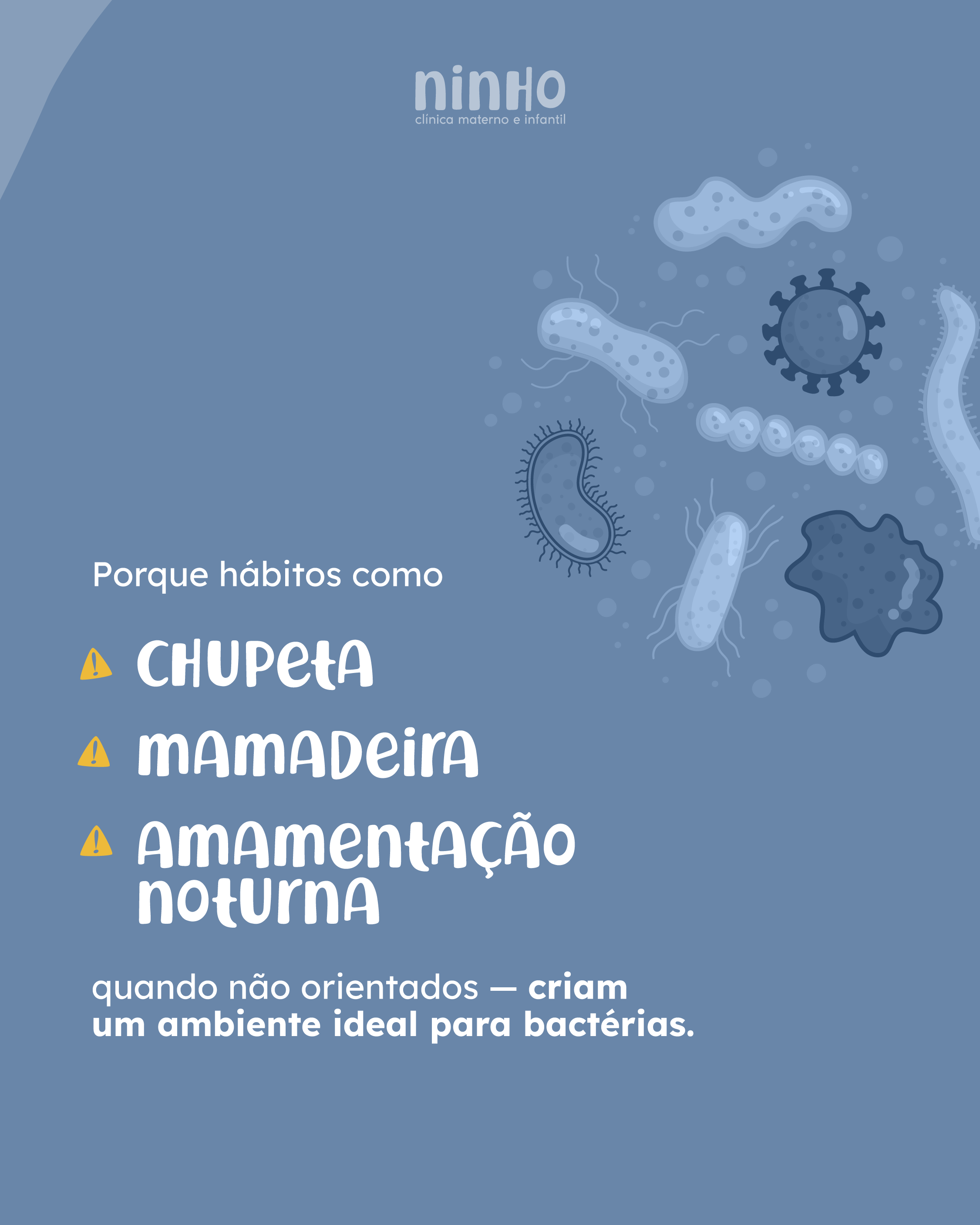 "Porque hábitos como chupeta, mamadeira e amamentação noturna — quando não orientados — criam um ambiente ideal para bactérias."