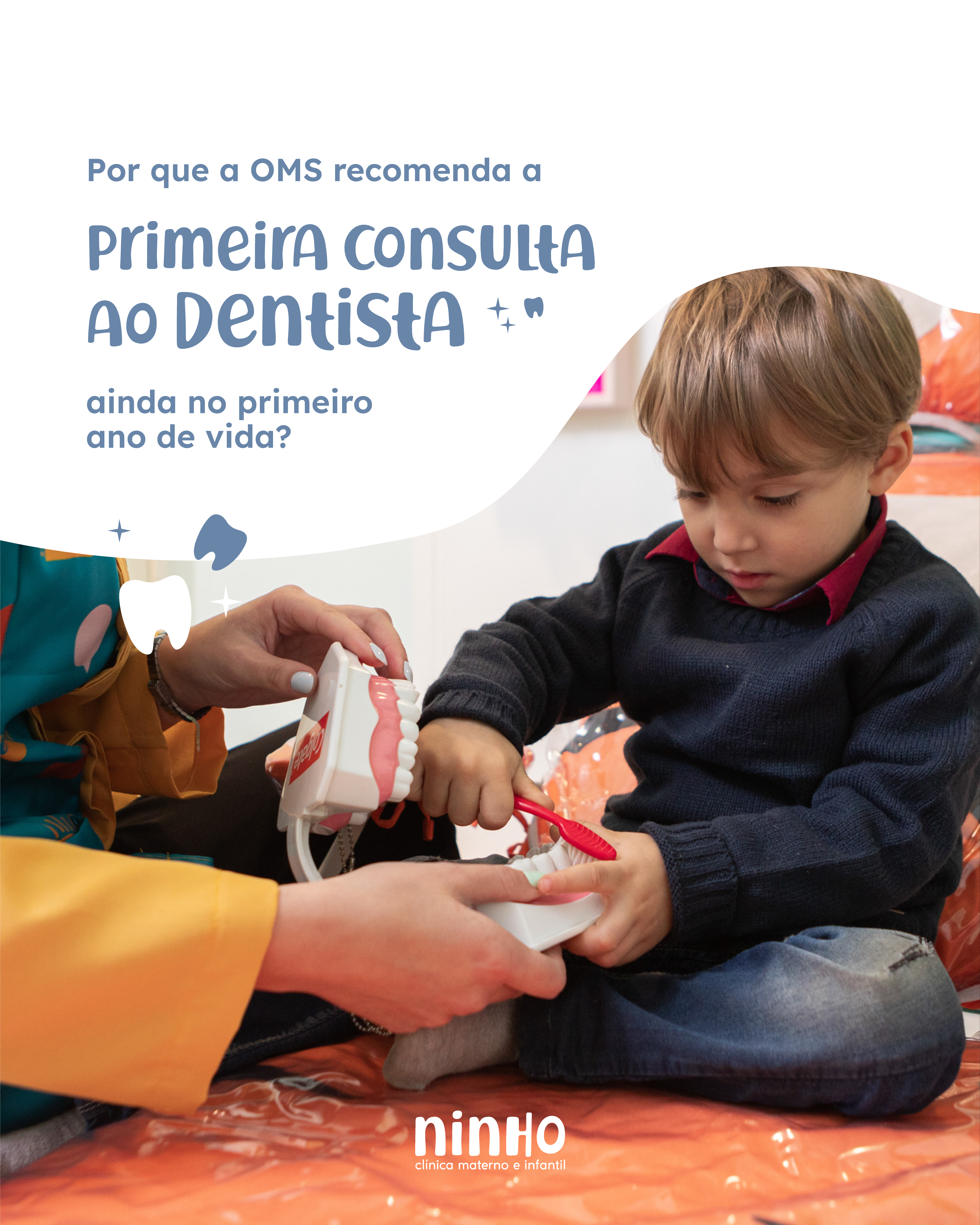 "A primeira avaliação odontológica do seu filho não precisa esperar ele reclamar de dor. Pode e deve acontecer agora."