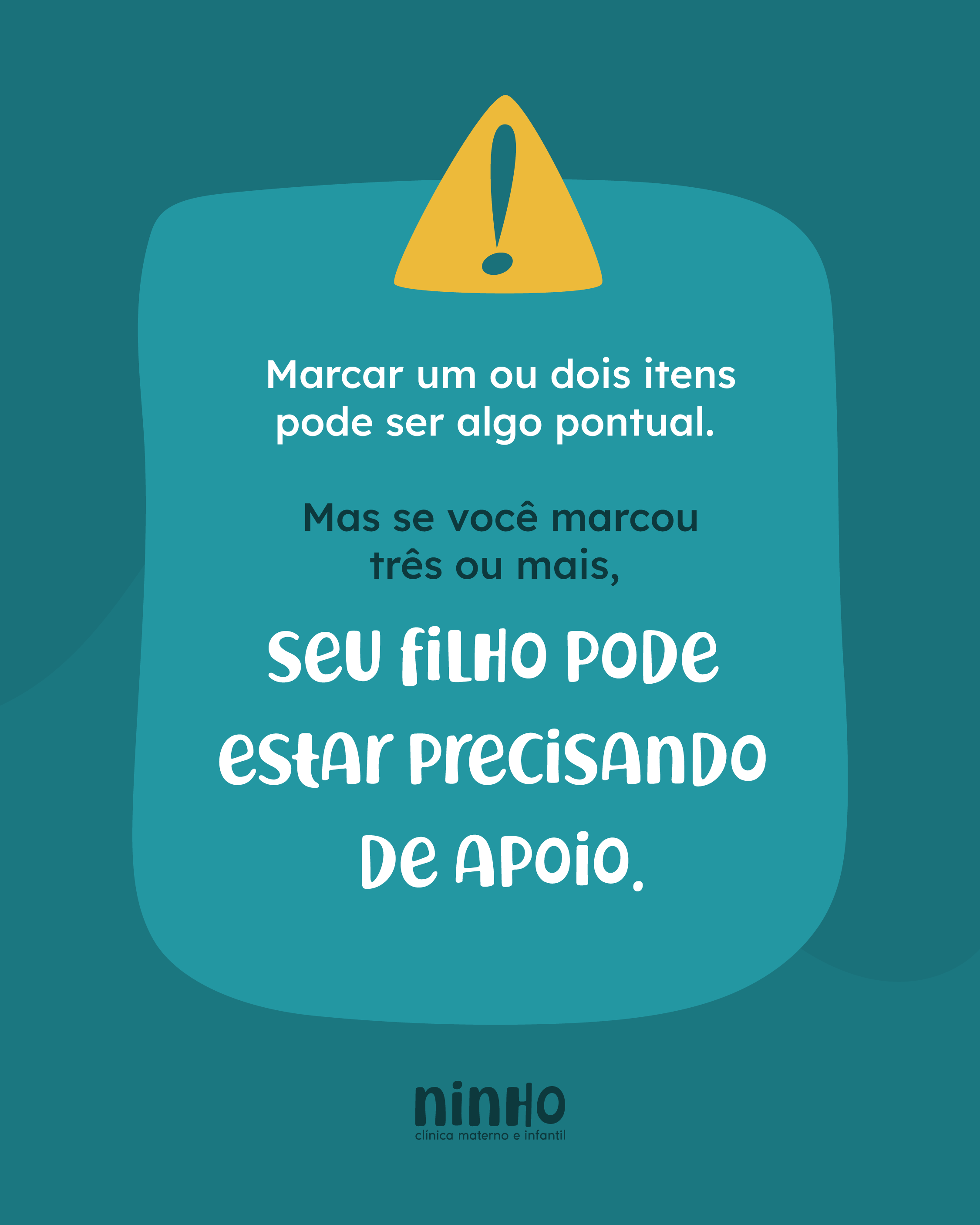 "Marcar um ou dois itens pode ser algo pontual. Mas se você marcou três ou mais, seu filho pode estar precisando de apoio."