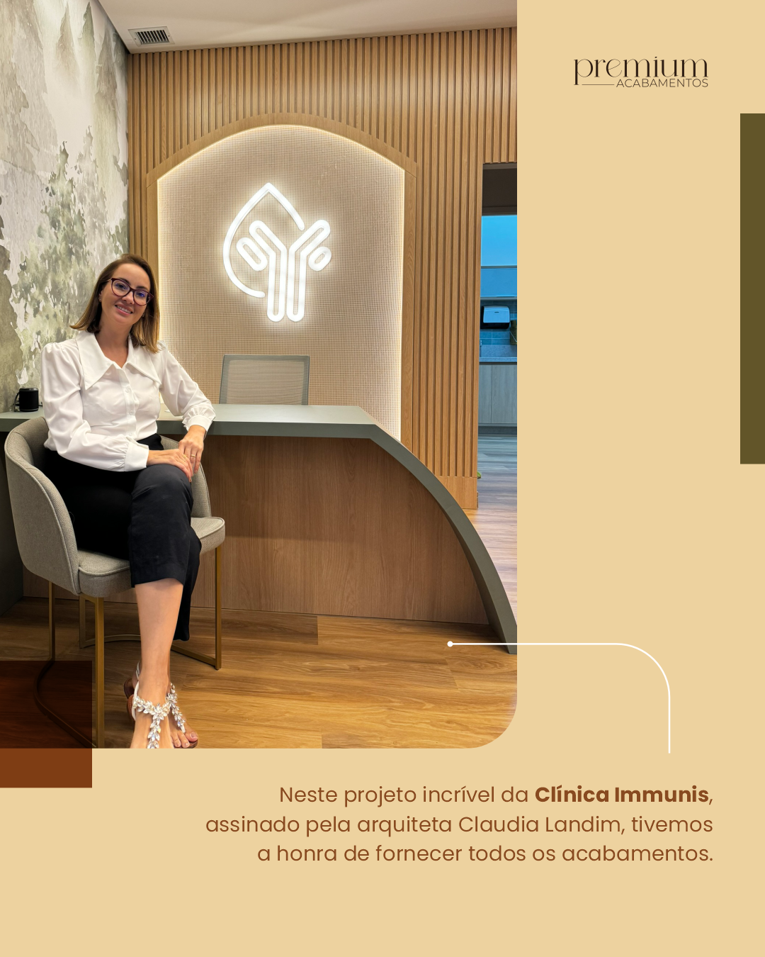 Neste projeto incrível da Clínica Immunis, assinado pela arquiteta Claudia Landim, tivemos a honra de fornecer todos os acabamentos.