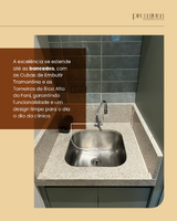 A excelência se estende até as bancadas, com as Cubas de Embutir Tramontina e as Torneiras de Bica Alta da Fani, garantindo funcionalidade e um design limpo para o dia a dia da clínica.