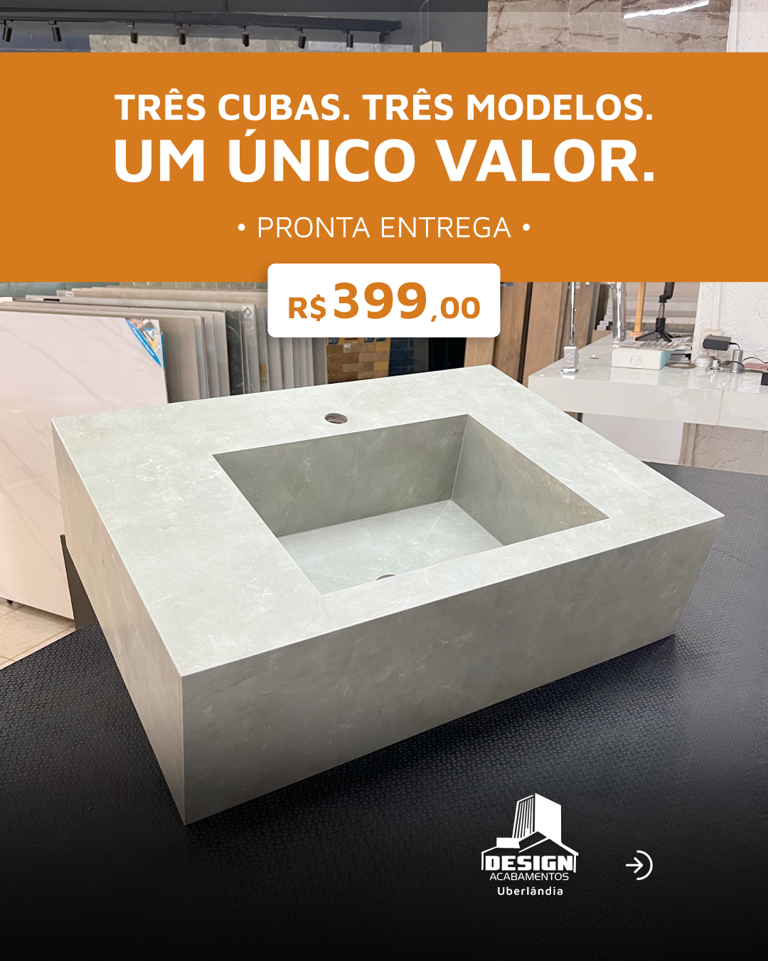 Três modelos diferentes, mesmo valor: R$ 399,00.Cubas com acabamento em porcelanato, produção própria da Design Acabamentos, prontas pra levar.