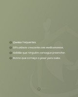 Fundo branco ou verde claro para essa série, transmitindo leveza e acolhimento. Tipografia grande e direta. Cada card com uma pergunta ou resposta curta, sem poluição visual.