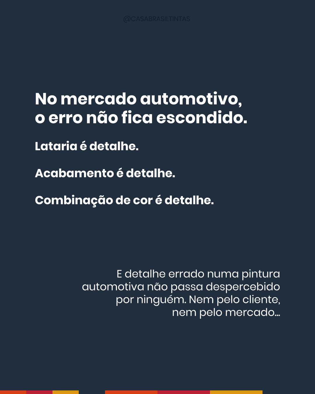 E detalhe errado numa pintura automotiva não passa despercebido por ninguém. Nem pelo cliente, nem pelo mercado...
