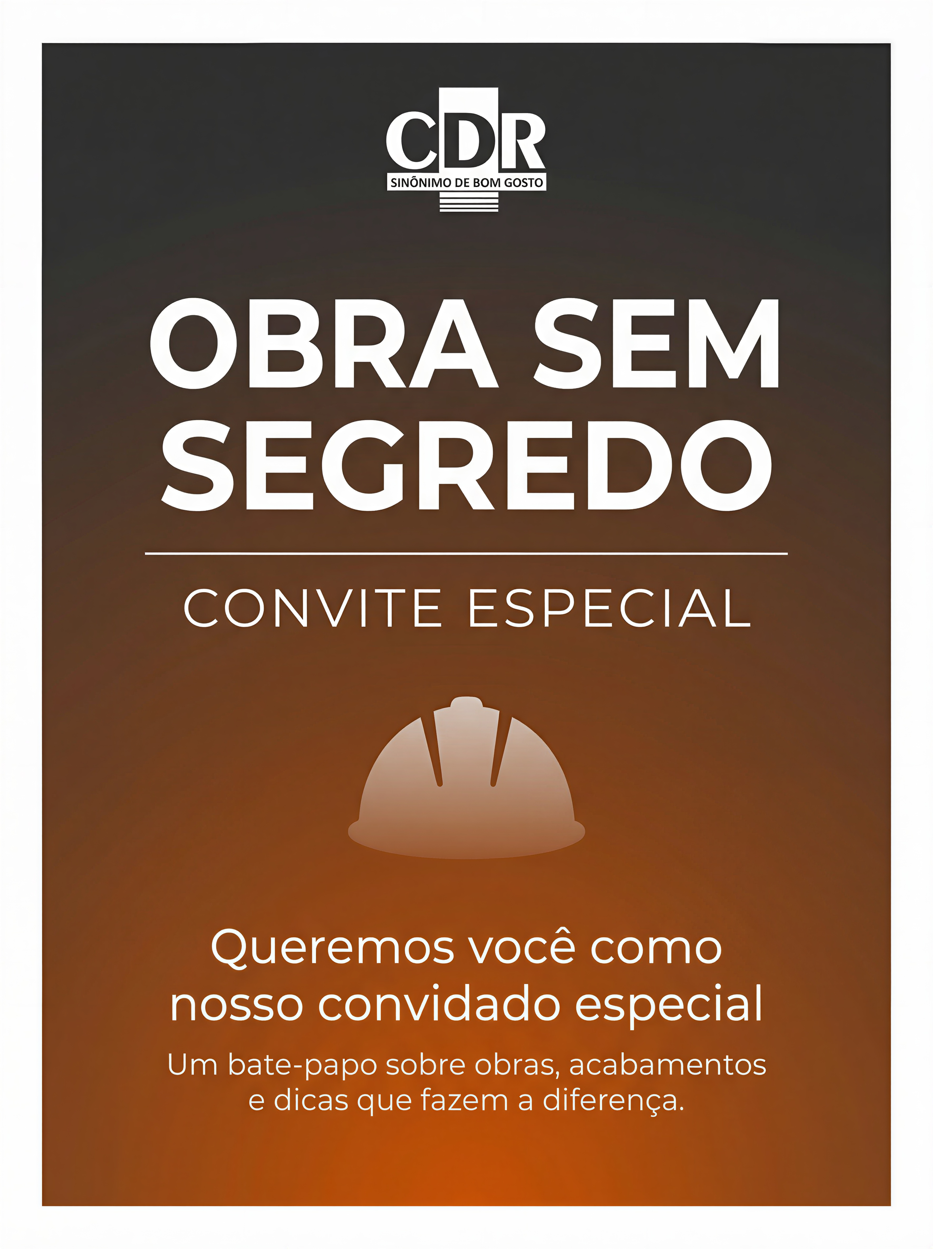 Estamos lançando um novo quadro em nossas redes sociais chamado "Obra sem Segredo". A ideia é gravar vídeos curtos e dinâmicos aqui na nossa loja, onde um especialista da CDR bate um papo com um profissional parceiro para tirar dúvidas reais dos nossos clientes (como dicas de assentamento, escolha de acabamentos, tendências, etc.).