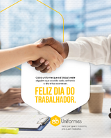 Card homenageando o trabalhador e conectando com o uniforme como símbolo de identidade profissional.