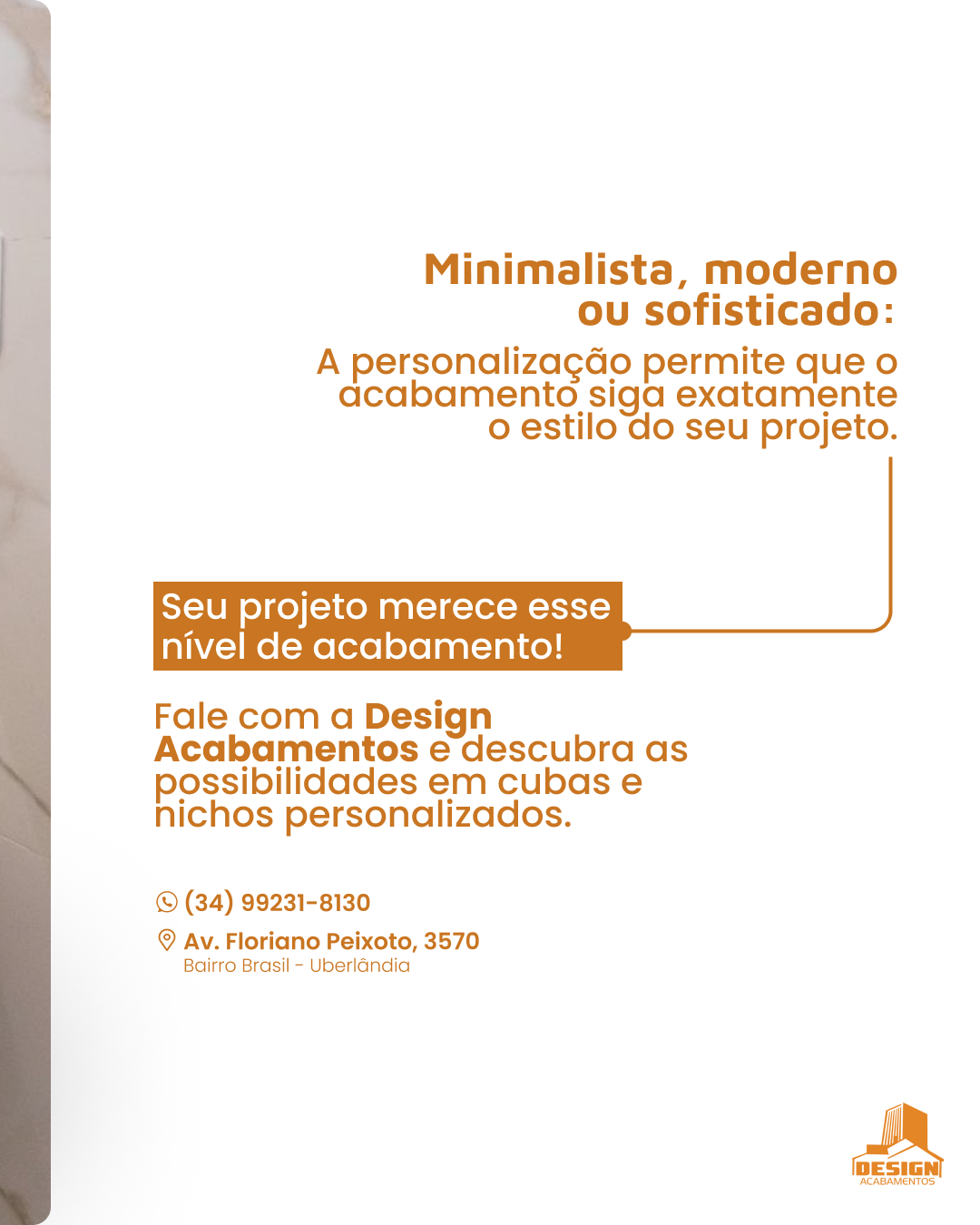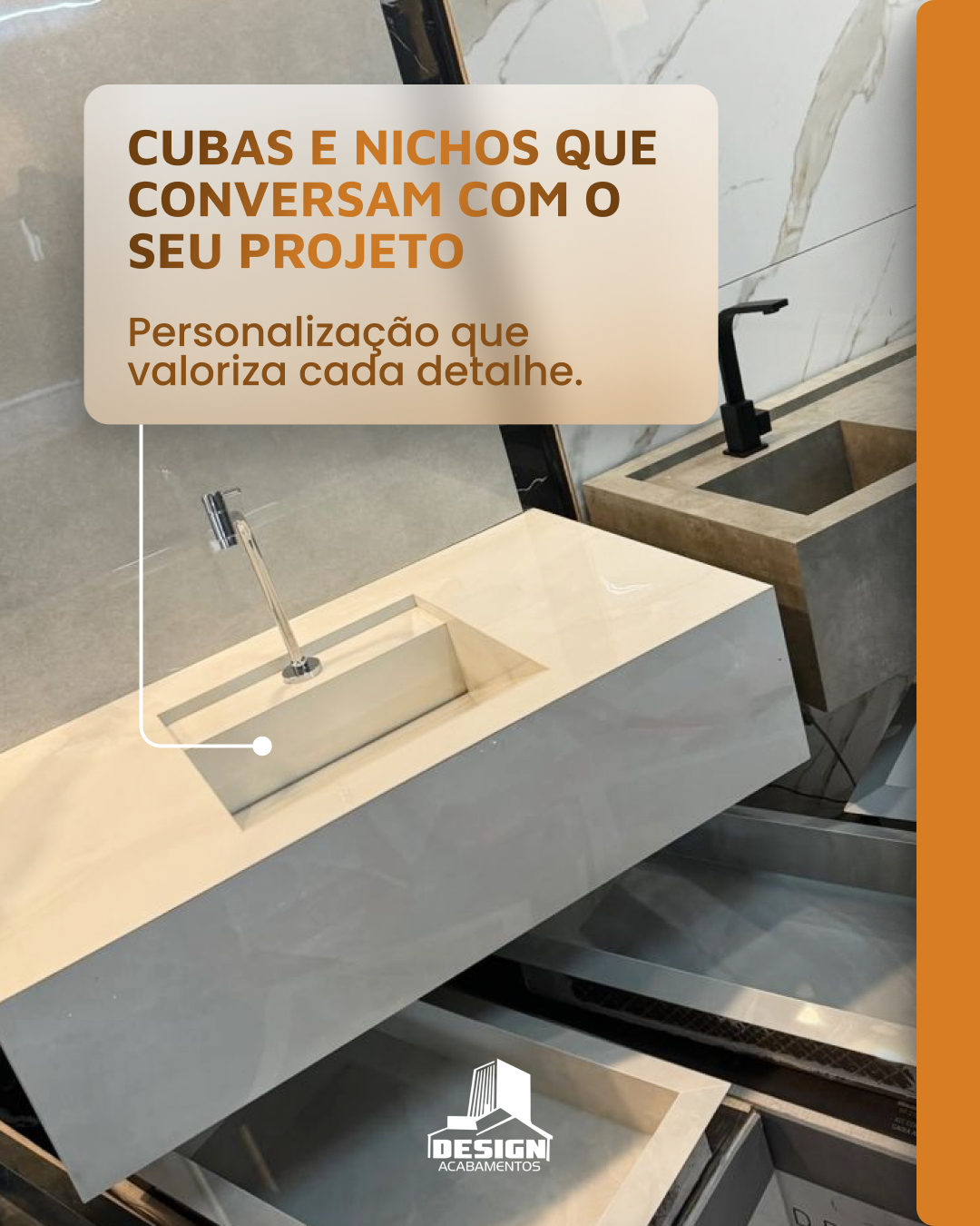 Fale com a Design Acabamentos e descubra as possibilidades em cubas e nichos personalizados.